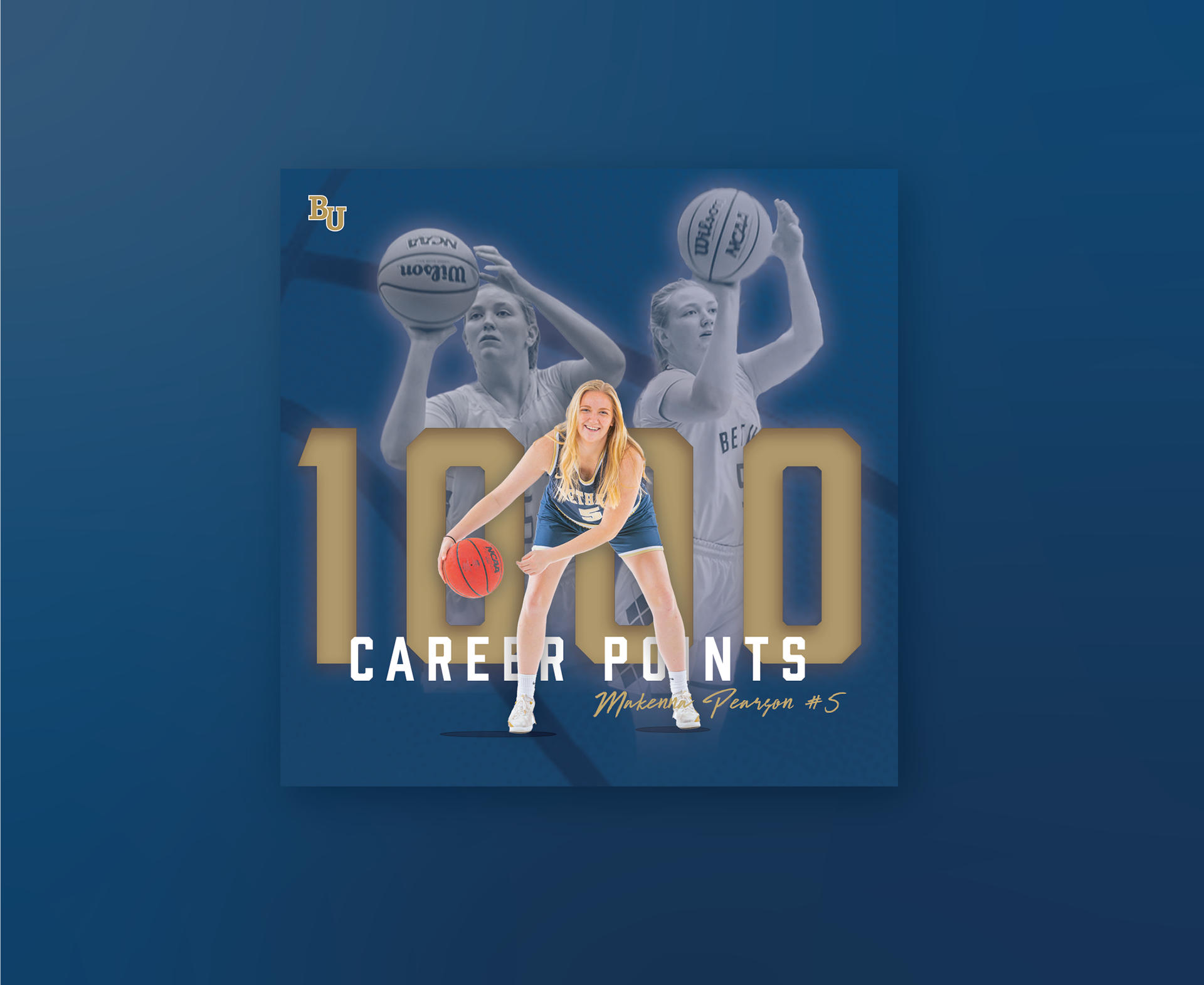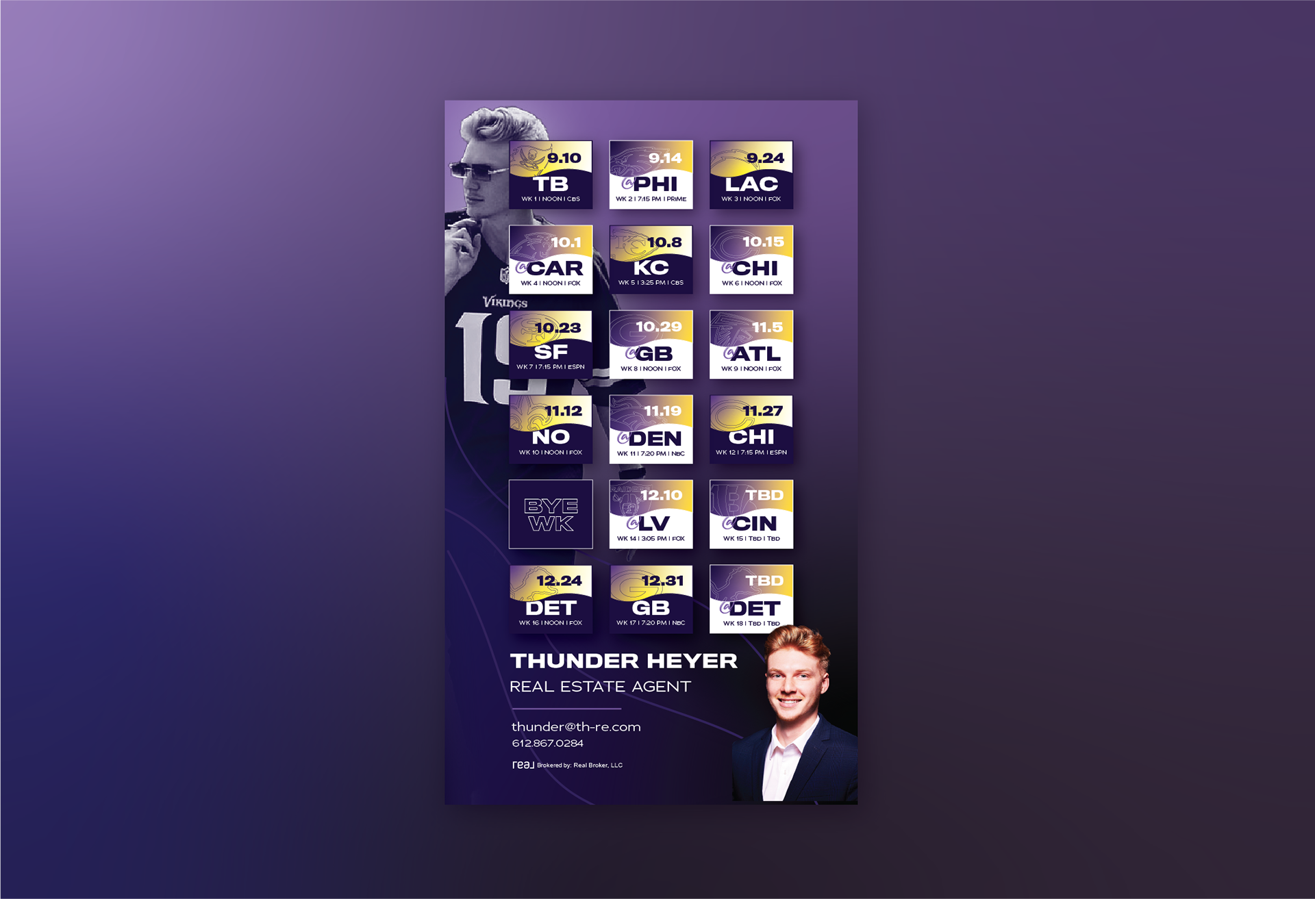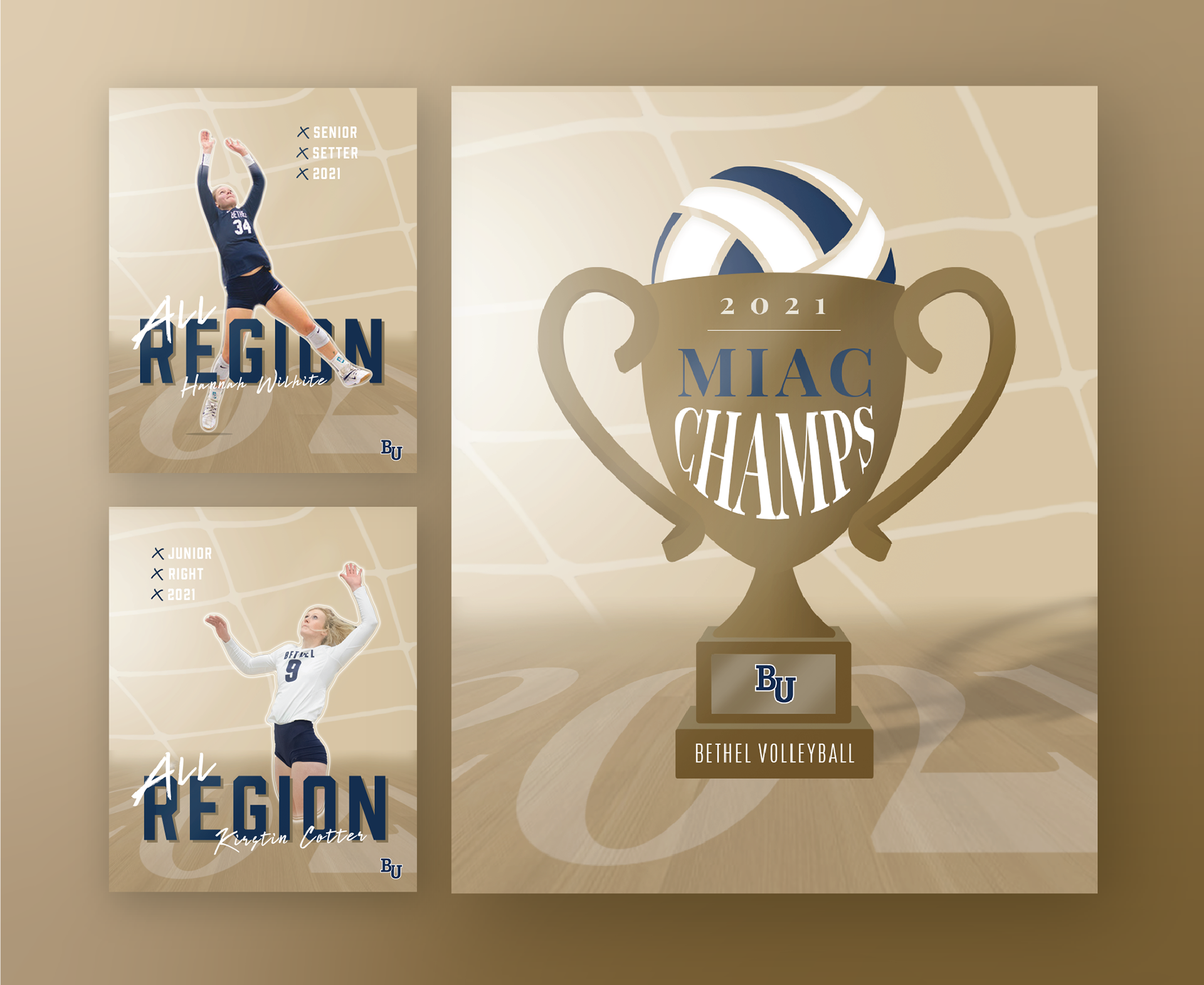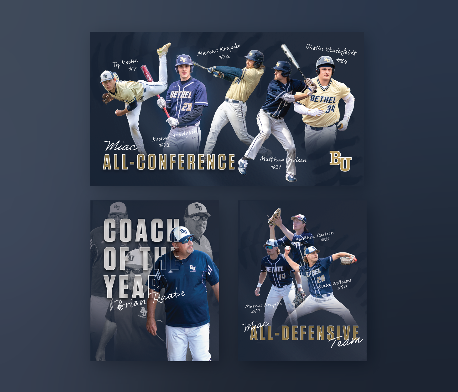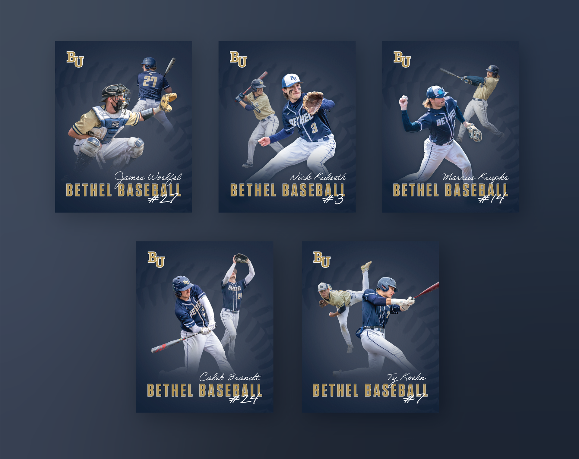 I created a personalized magnet for a realtor to send to clients. In addition, I created sports graphics for Bethel University from social media to senior posters.